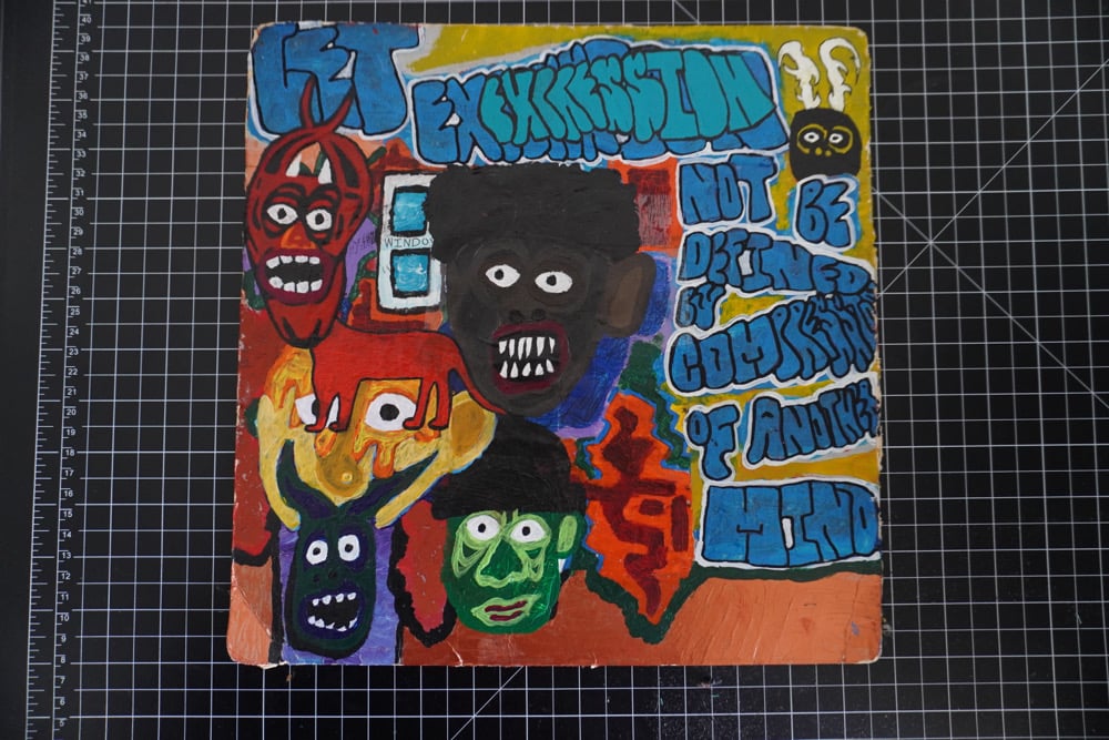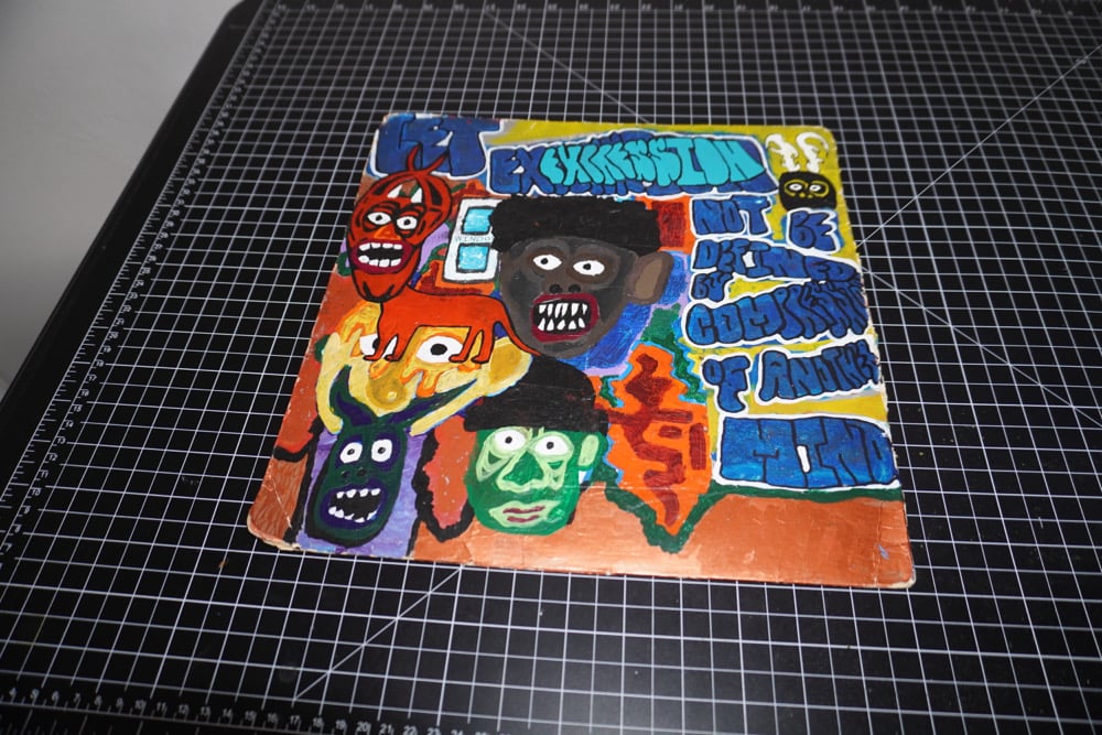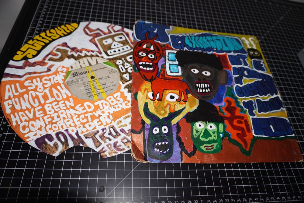 2-piece Miami drive the party freaks chipped record and record sleeve art pieces.